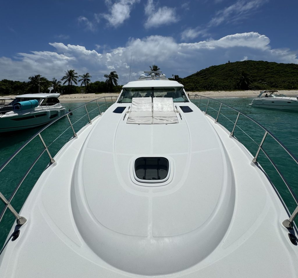 Aventurea’s fleet features some of the newest yachts available. The largest boat, a Sea Ray 55 named Wonder, offers a great outdoor space with a covered circular table that can easily fit parties of up to 12 people. An ample forward deck is great for sunbathing and a rear swim platform gives easy access to the water. Another boat in their fleet is a Sea Ray 51 named Believe. This powerboat can handle groups of up to 10 in comfort. It also features a covered lounge area, swim platform and forward deck. Both boats offer air conditioning down below, refrigerators and 120v power along with a bluetooth equipped sound system. Beds for naps are also available and both have two heads or bathrooms.